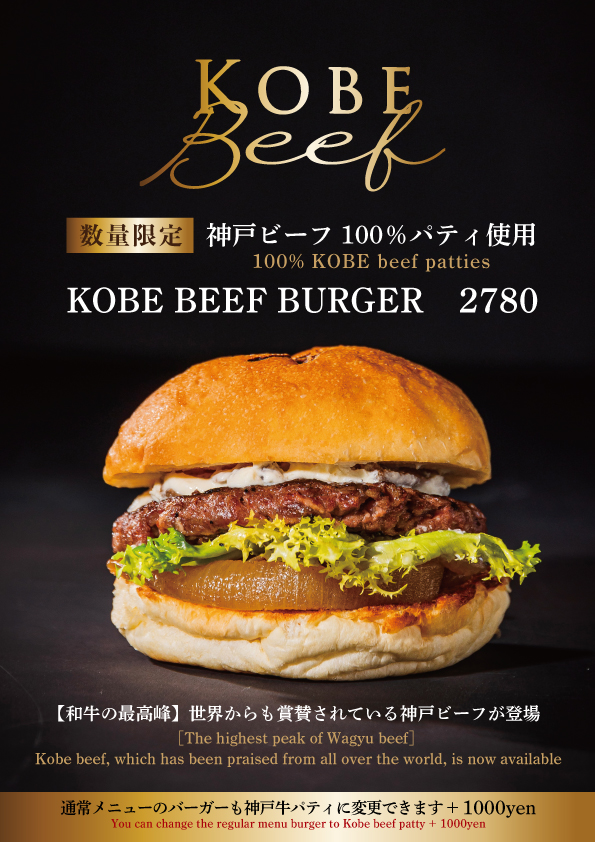 プラス1,000円で通常メニューのバーガーも神戸牛パティに変更できます。
